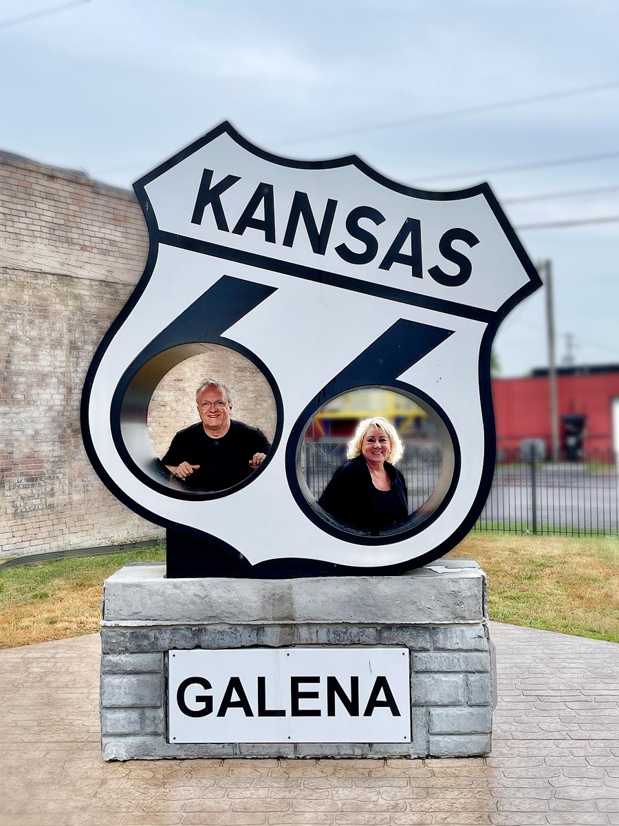 Before our trip, I had a pretty good idea that we might see at least a little bit of Historic Route 66 somewhere along the way. Well, that very afternoon, our path crossed Route 66 in Kansas. So, of course, we made a brief stop there to take a couple of photos with the Route 66 road signs along the highway in Riverton, Kansas. The next thing we know, we’re visiting with a couple who suggested that we travel just a few miles away to Galena, Kansas, to take a look around. What a great idea that was!